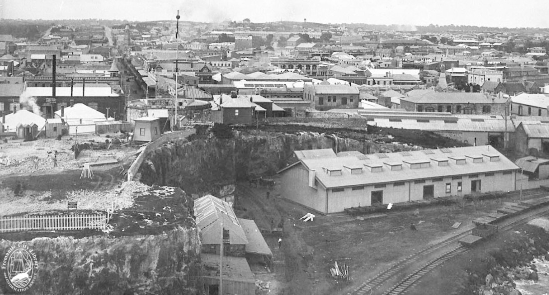 Most of the available rock has been quarried out of the western end of the area, almost back to the jail. However, the name remains, and now refers particularly to the elevated area where the Round House is, but also the area west of the entrance to the Whalers Tunnel, the area around J Shed, and the land on which some of the Challenger TAFE buildings now stand.