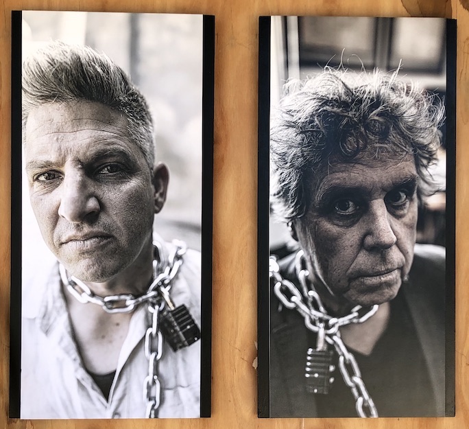 The men shown with (modern) chains and (modern) padlocks around their necks are whitefellas (it turns out) while the one blackfella is of course unchained. That's the 'inversion'. But the photos are taken in such a way that the whitefellas' skin appears brownish. I had to ask the Staff member in attendance to explain. I had recognised Jessee Lee Johns, builder of the museum, as one of the chained men. She told me that another is the artistic director of the Biennale, Tom Müller, another is Andy Quilty, a non-Aboriginal artist admired by Kickett (as he says in the interview linked below), and so on.