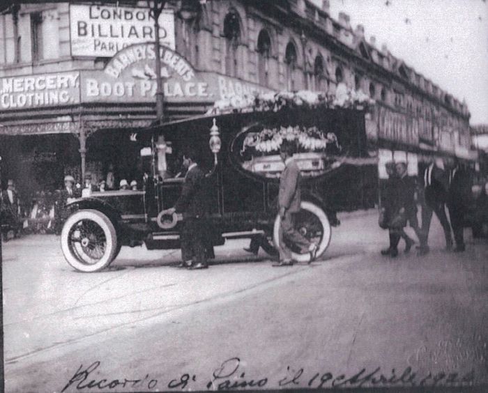 Cono was electrocuted when he touched electrical wires when playing on the roof. Here is a photo of his funeral cortege entering High Street from Market Street. (Source unknown, but it will probably turn out to be the City Library's collection.)