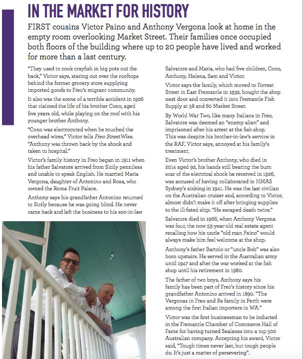 Thanks to Carmelo Amalfi for permission to republish the article (above) from Freo StreetWise for April 2016. (A Google search suggests there is a Facebook post at this address, but it's not appearing on my screen.)
