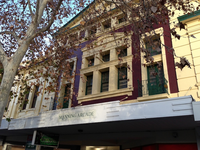 The Theatre opened in 1916 and was closed in 1938 after which the site was redeveloped for retail, and the facade is over what is now the Manning Arcade, in which Five Star Tattoo used to occupy the former cinema's offices. One of the staff was kind enough to allow me into the cinema auditorium 22 June 2014 so that I was able to take some of the photos below.