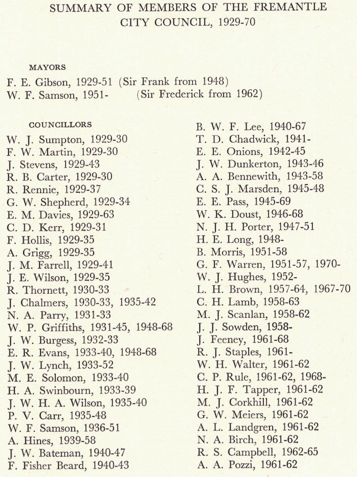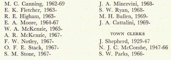 Councillors: MH Bullen (Deputy Mayor), JA Cattalini, RA Cotton, F Del Rosso, EK Fletcher, JD Green, EJ Hardie, RE Higham, LC Lauder, HE Long, JA Minervini, FW Notley, F Portman, DJ Sowden, JJ Sowden, OFE Stack, SM Stone, RB Warren; City Manager/Town Clerk: SW Parks