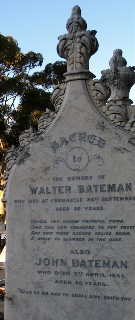 Walter Bateman's gravestone in Fremantle cemetery, probably at Congregational D3, also remembers his father John Bateman >