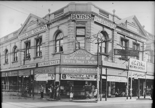 Barney Silbert's Corner, c. 1900, on the corner of the Mall and Market Streets at No. 109 High Street and built c.1900. By 1907 it was occupied by Freedman and Company Ltd., one of a number of drapers then operating in High Street. Barney Silbert operated his shoe shop and drapery business in the premises until the 1950s. The Silbert family came from the area known as The Pale, between eastern Poland and the western border of Russia. As a corner site, it was a convenient rendezvous for citizens and became known as ‘Barney's Corner‘. 1n 2005 it was occupied by another shoe store. In 2019 there is a retailer in the ground-floor corner store, and the sign with 'Barney Silbert's Corner' has been removed from the first-floor corner window. It is one small part of the extensive Manning Buildings - which in 2019 have been radically renovated by Silverleaf.