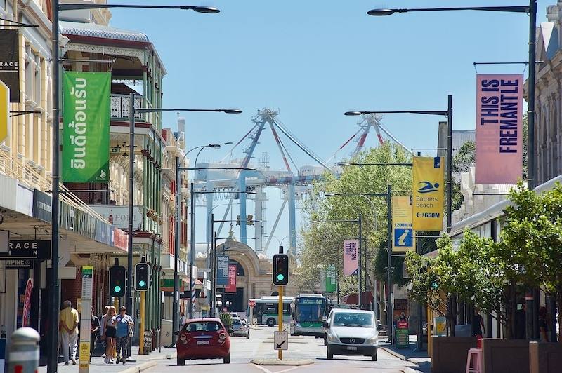 The traffic from Market Street continues around a slight bend as it becomes South Terrace, beginning on the east side with the Newcastle Club (Newport) Hotel and on the western side with Gino's. However, there is a bit more of Market Street - now called Little Market Street, I think, to indicate its different status. It contains half a dozen shops and eateries, with Sandrino near the end. There is then an intersection of Collie and Nairn Streets with (Little) Market Street, with business premises on the pointy bit, and Market Street terminates at the Millennium cinema in Collie Street.